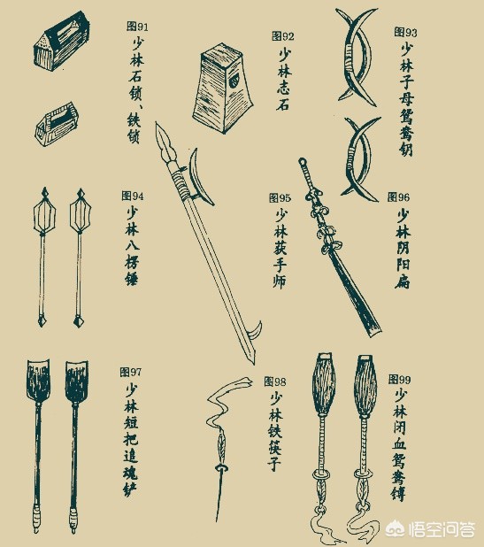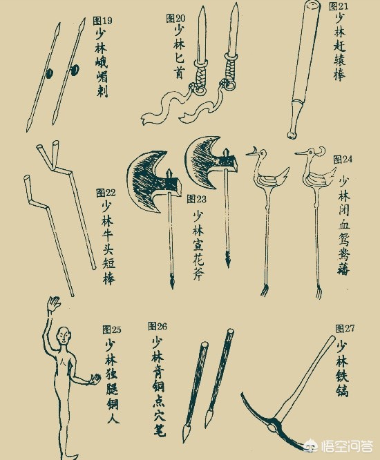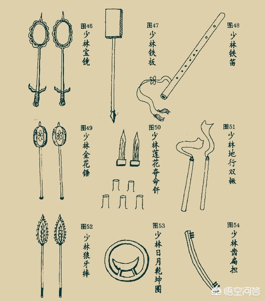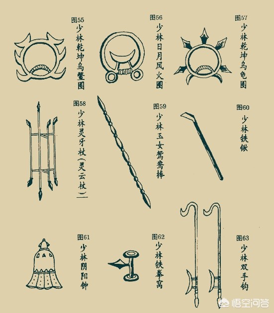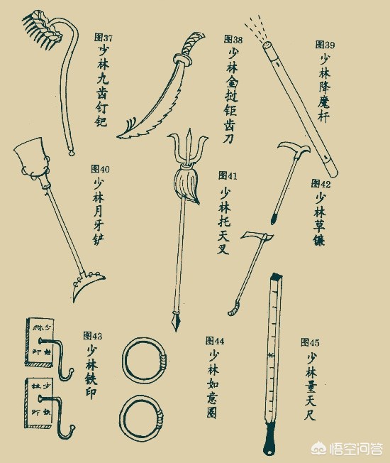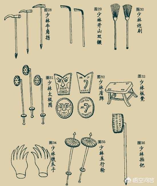 第六图:走错片场了?这里面我会五种兵器:37、38、39、40、41。因为我看过六小龄童的《西游记》。