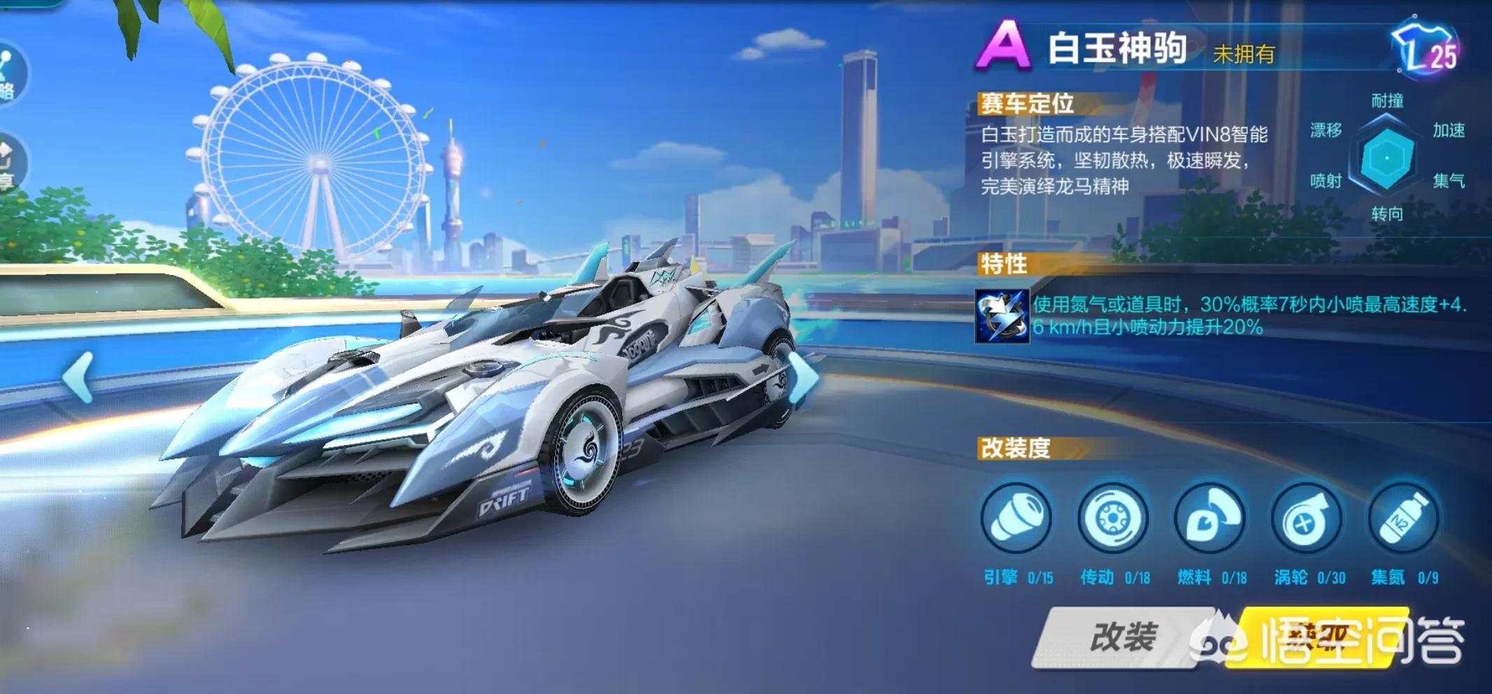 白玉神驹漂移和集气略差,将能力集中与氮气和小喷方面。特性能力全是加强小喷,但是最高速度本身就比很多车加了特性还高。