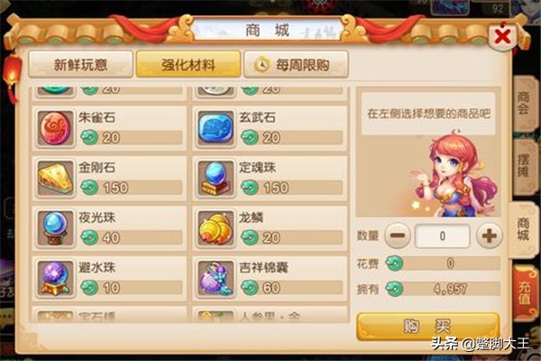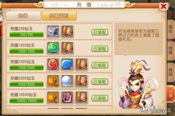 3.仙灵店铺,一般推荐有三折的就用仙玉去买,可以多刷一下看见符合的直接买,也有选择买金宠物碎片的,这个v6级别不是很推荐,v9级别以上氪金比较多的比较推荐换,不然就靠系统送的压根凑不齐碎片。