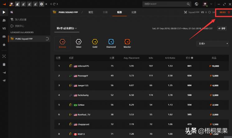 Faceit平台就是类似于CS:GO中5E或B5的第三方游戏对战平台,拥有堪称PUBG官方级别的服务器,详细记录保存玩家的战绩平衡玩家综合水平。根据玩家自身的KDA同天梯分数平衡匹配,在Faceit平台对战的玩家基本上都可以享受平等竞技的快乐,路人匹配职业选手的概率大大降低。