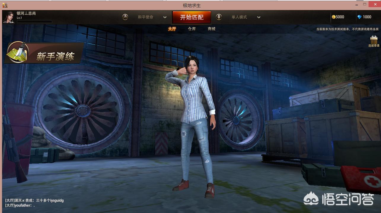 在准备区可以看到,这人物虽然设计的还不好看,但是游戏中却还有光影效果,并且吃鸡该有的它差不多都有,残影在游戏有一个很烦的就是这里面不能翻墙,所以从楼顶是跳不下来的,还得走楼梯。