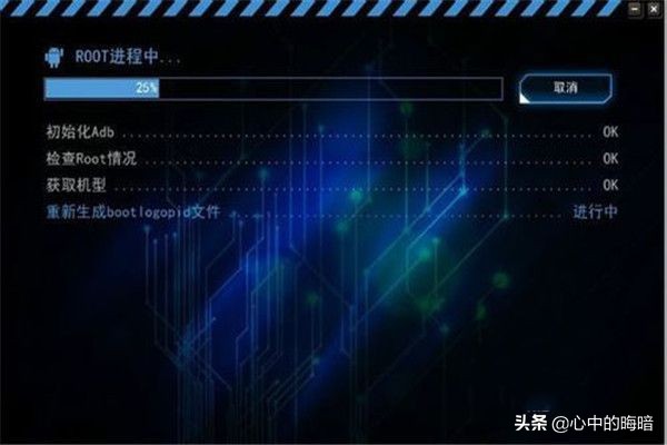 3、点击操作界面的“一键root”选项后,root过程现在才正式开始,期间大约需用1分钟左右的时间,时间长短由你的机型差异决定,需要时间可能不一会不一样,还请耐心等待。
