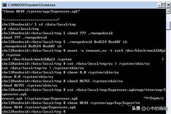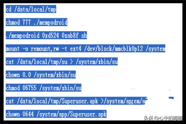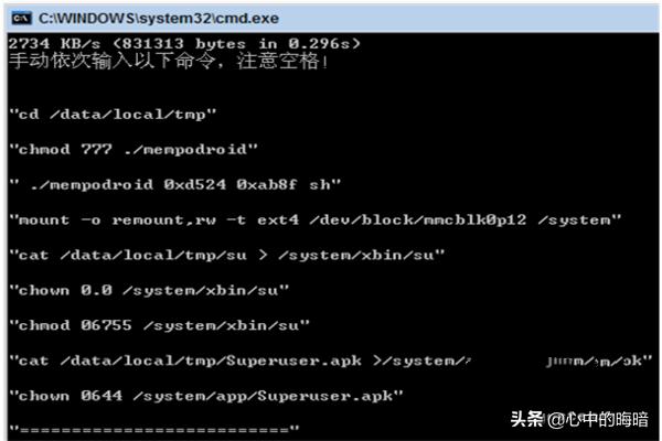 7、代码复制执行后,正确的输入如图,全部执行命令输完后,手机中出现了授权管理软件,也就是superuser,表示你的手机已经ROOT成功了。