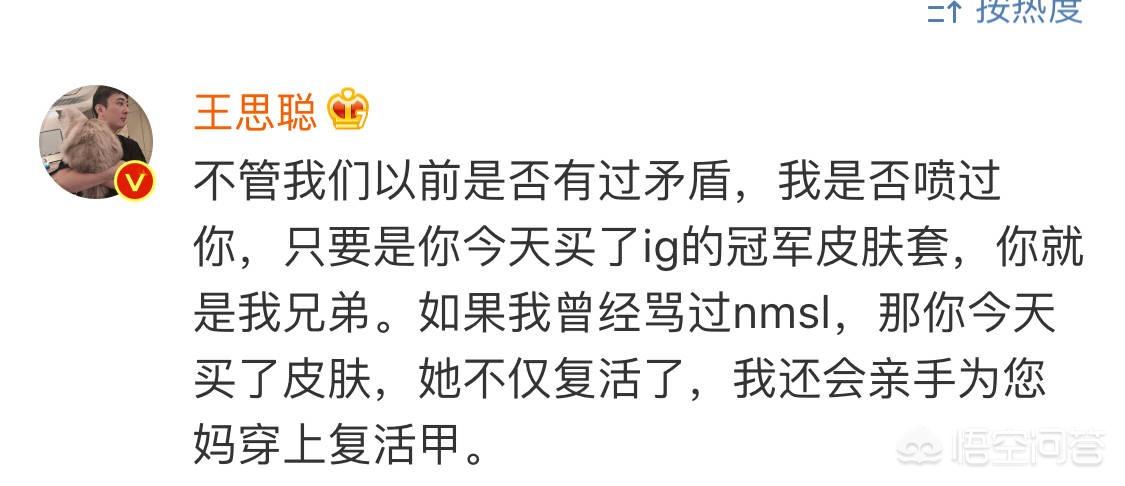 王思聪也发了微博,表示只要买了皮肤,大家就是兄弟。