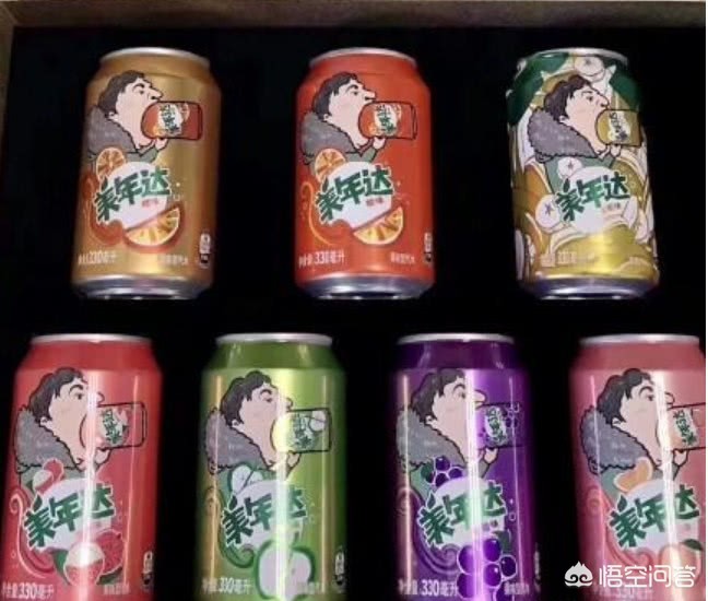 有趣的是这次和饮料合作之后,美年达推出的居然是以王思聪的吃热狗头像为主题的一系列饮料罐,各个口味都有,可以说是相当的彻底了,而王思聪应该也是体会到了真香的感觉。