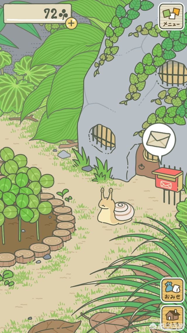 当你进入游戏的时候就会出现在院子里,院子里有三叶草,它相当于金币,可在商店里购买物品。院子里还有个邮箱,这是呱呱旅行在外寄东西回来接收的地方。呱呱不出去旅行就会待在家里,家的摆设特别简单,桌子板凳,杂货间和一张床。没事的时候呱呱会坐在床上静静的看书,就和我们自己一样。界面上的按钮