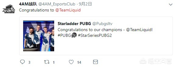 众所周知,国内只有香港、台湾等地区能浏览Twitter,而内地的网友只能通过科学上网的方法才能进入该社交平台。所以开通这个推特的意义应该是和一些不怎么上微博但主玩推特的粉丝建立联系,Liquid在获得冠军之后,4AM的官方推特还艾特了Liquid战队并表示祝贺。由此可见,最主要的还是聚集国外粉丝,和国外俱乐部建立联系并慢慢走向国际化。