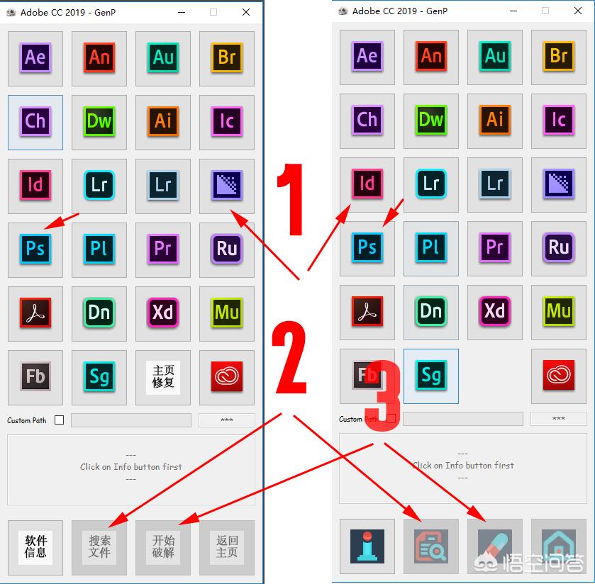 第一步,在上面选你要对付的软件图标,这里要对Ps下手,就选Ps的图标。