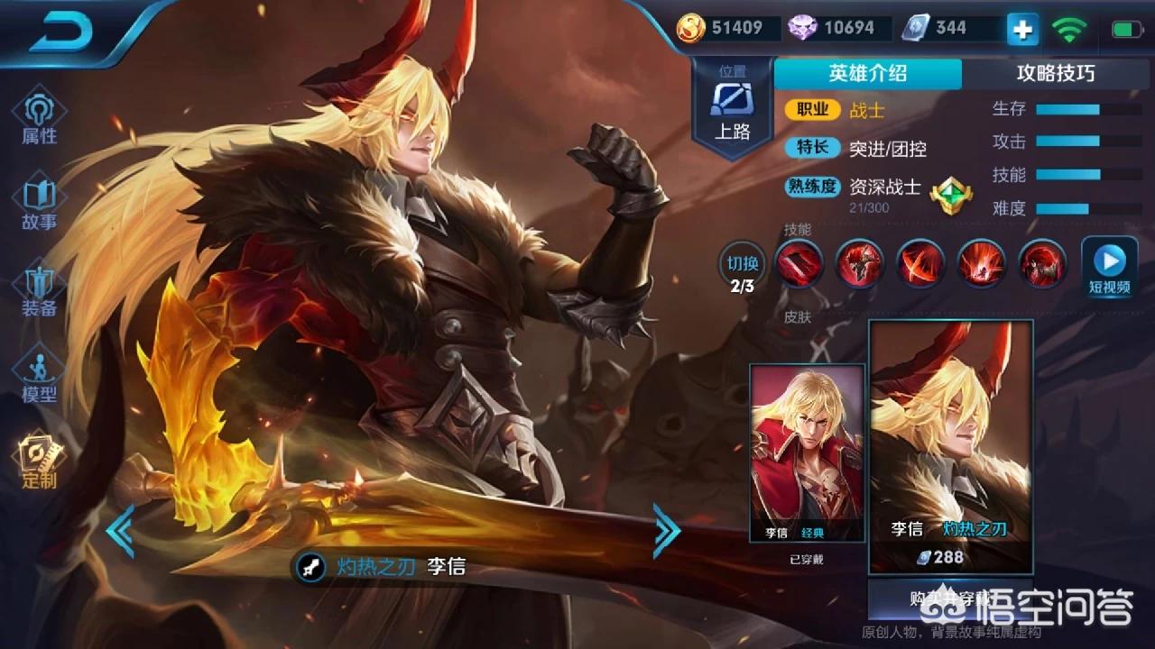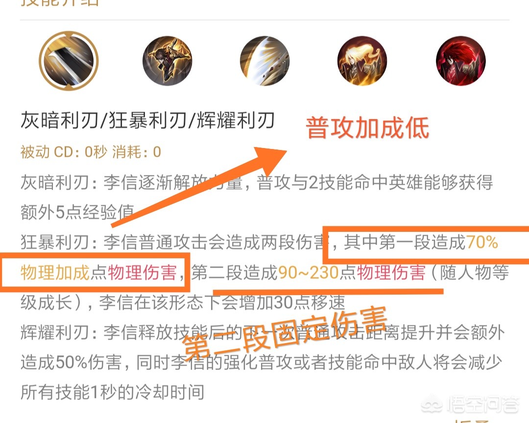 李信是一个双形态的物理英雄。光明下的李信靠技能输出,暗黑下的李信靠技能+普攻输出。所以在被选择上不适合堆过多的暴击装备。但是可以出一件暴击装那就是宗师之力。下面我们来分析一下这个英雄。