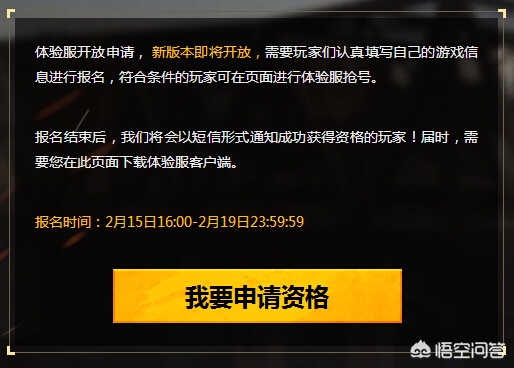 一、申请体验服的流程很简单,大家只需要进入申请页面(想知道地址的可以私信回复“体验服地址”即可获得申请地址及下载地址),点击下方的“我要申请资格”即可进入申请页面。
