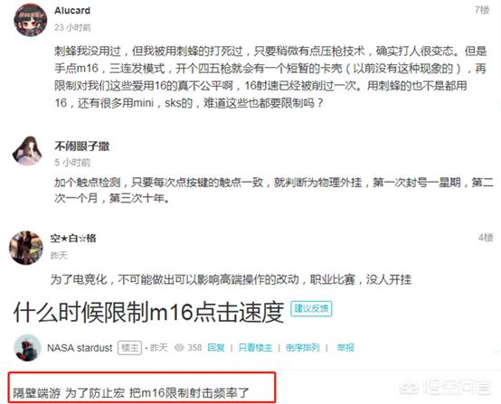 部分玩家看到后也表示,现在的手点M16,三连发模式下,开个4-5就会有一个非常微小的短暂卡壳,这也是让蜂刺类玩家的1秒8枪优势太大,毕竟正常人类是打不出这种手速的。