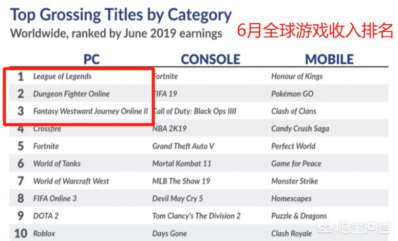 全球游戏收入排行榜出炉,梦幻西游和DNF老而坚挺,LOL排名No.1,不是说它们都要凉了吗