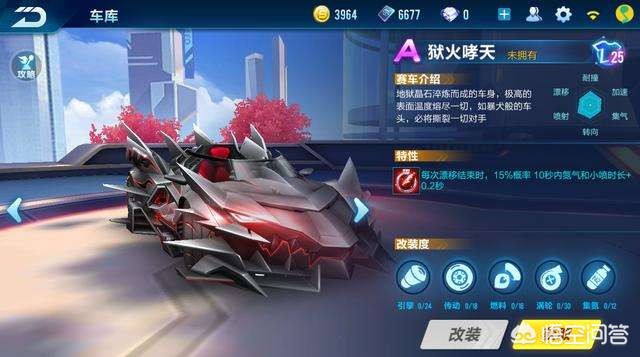 赛车特性: 狱火哮天具有强大的特性:每次漂移结束时 15%概率10秒内氮气和小喷时长加0.2秒。