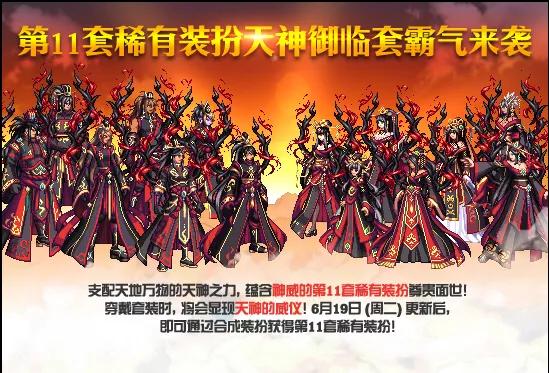 第11套天空名字叫做天神御临套,从外观来看整体是一个宫廷特色的衣服,特效是一个缠绕着火焰的藤蔓,更加像火神!