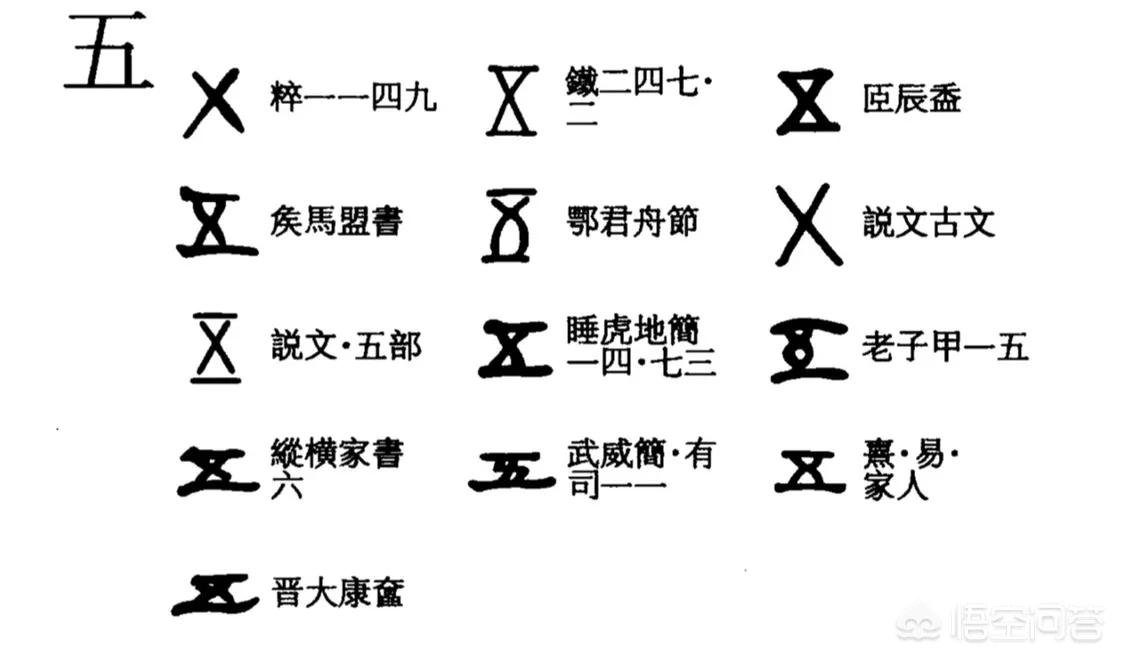既然到了五这个字了,当然不能再画五横,那样就不能叫做文明了。所以到数字五这里就发生了改变,用这个“ㄨ”来表示数字五。之后经过演化才变成了现在的“五”字,在我国古代哲学上,“五”也被赋予了五行之义,由此衍生出一堆东西。