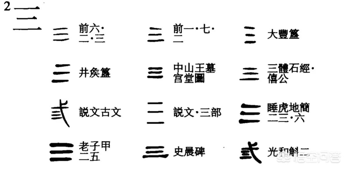 “一”既然是一横,那么“二”当然就是两横,不过这两横是等长的,不是如今的一长一短。在哲学上,“二”表示阴阳之义。