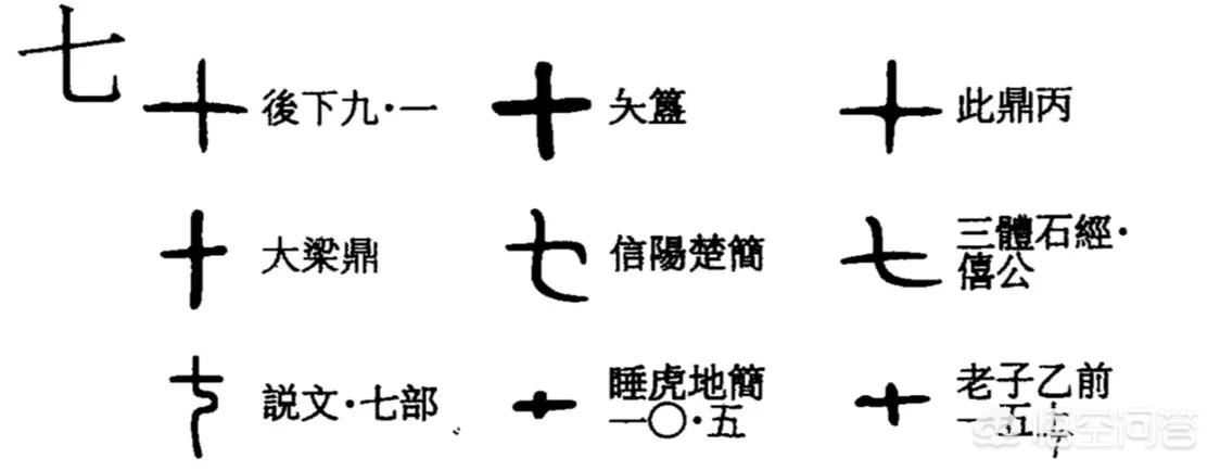 本来古人用“十”来表示七字,之后为了和十字区别开来,七字变成了我们如今写的这个“七”字。古人以阴阳相配为出发点,把一到五称为生数,六到十称为成数,“七”就是二的成数。