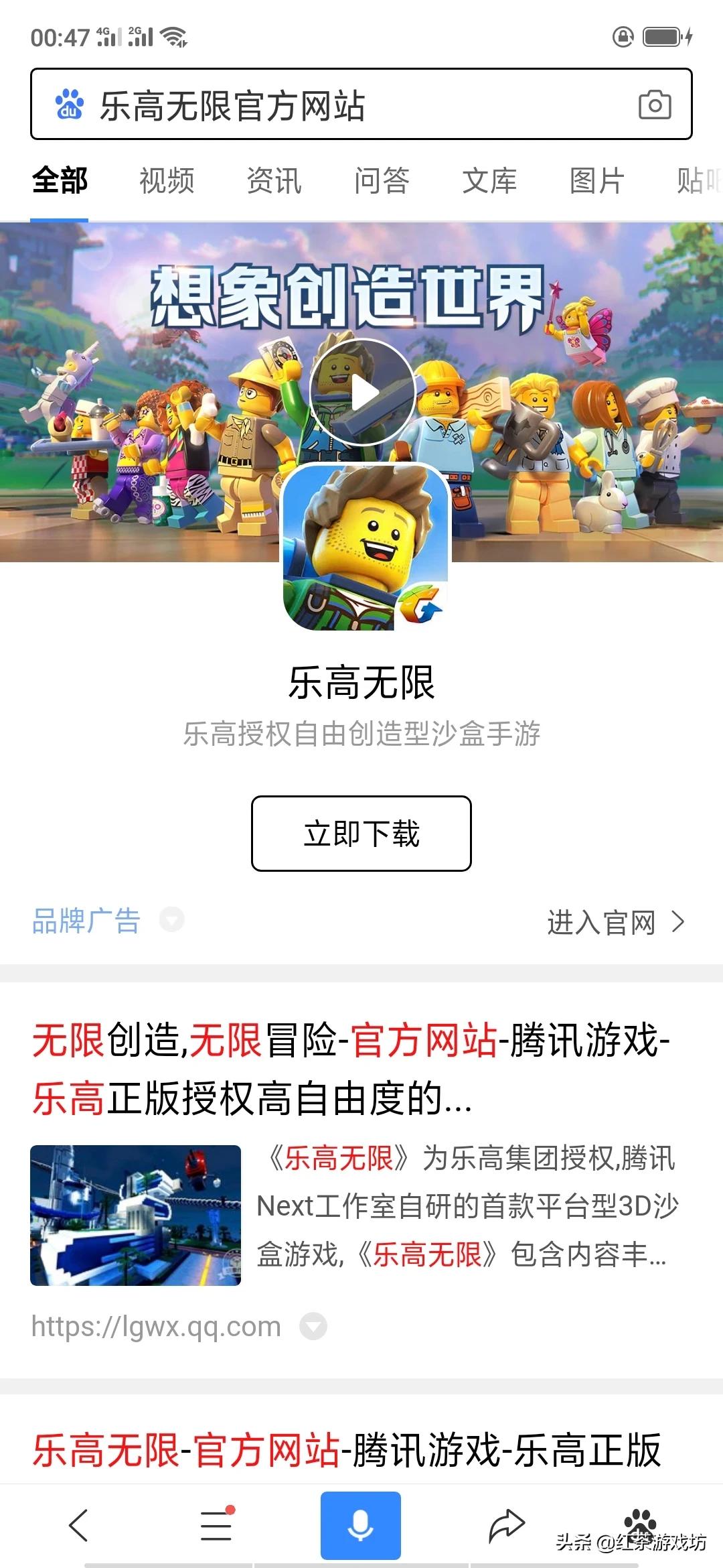 可以通过浏览器,应用宝,应用商店,等各大平台,通过搜索“乐高无限,”在进行下载就行。下面我来给你演示一下:
