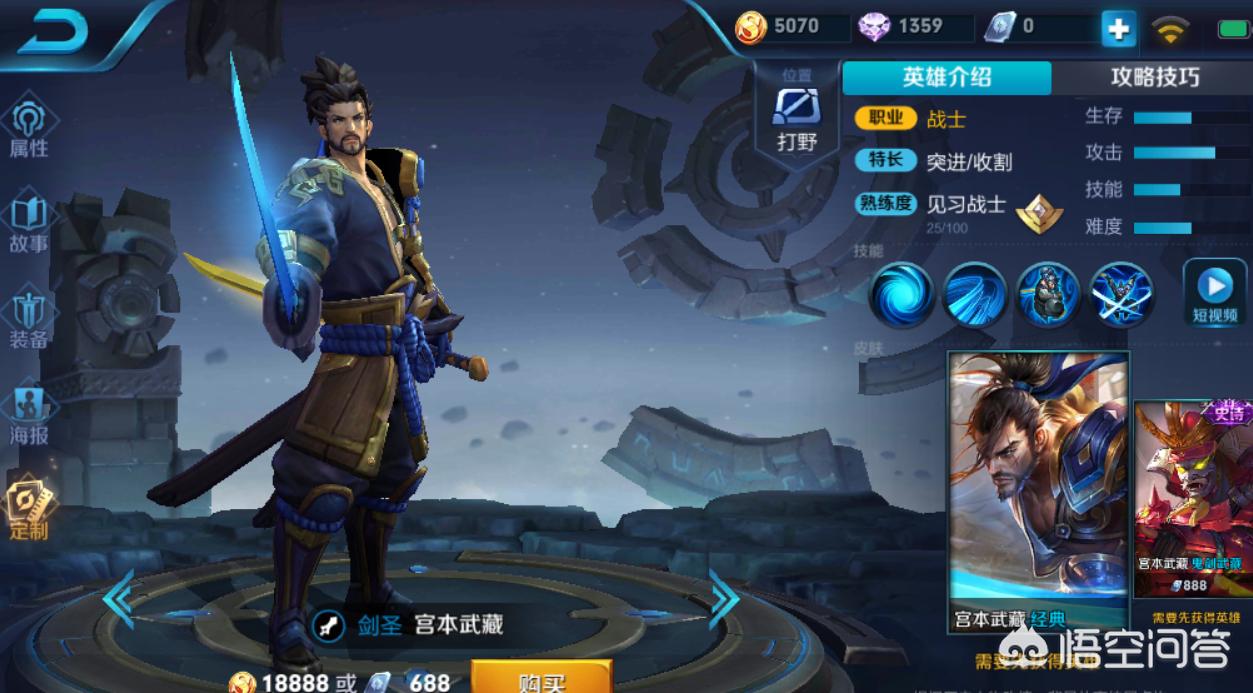 宫本武藏价值18888金币,没有打过折,一直都是全款出售,在威威看来,宫本是一个非常值得买的英雄。
