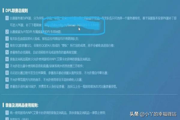 3、在规则里有个链接 点击进去 就是 比赛服补丁的百度网盘下载地址