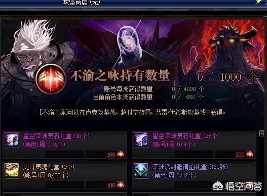 大号650+小号500,还差2950个,所以需要15个小号划水卢克,神啊,这叫减负吗!我的肝又不好了!宿命之恒删除,换深渊票要不渝之咏,划不来啊,建议每周优先兑换星空灵石和史诗灵魂,毕竟深渊票便宜,不足5000一张。