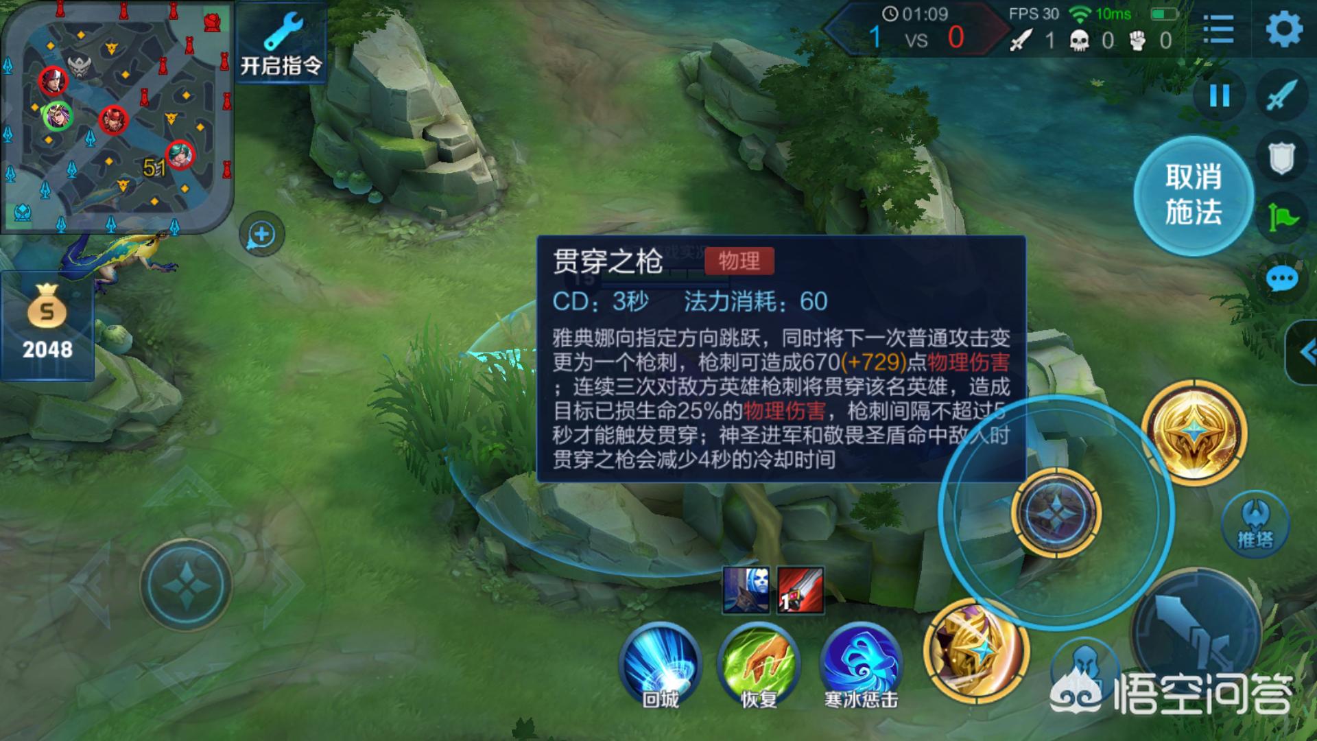 雅典娜的技能机制和CD,可以使得雅典娜的机动性大幅度提高,同时也能保证雅典娜的Combo伤害。雅典娜的使用机制和孙悟空相似,孙悟空是技能后普攻,雅典娜是二技能后普攻,论伤害的话,雅典娜和孙悟空比较,有过之而无不及。雅典娜的二技能自带惩戒效果,当枪刺次数达到一定数值,能够附加25%敌方已损生命值。