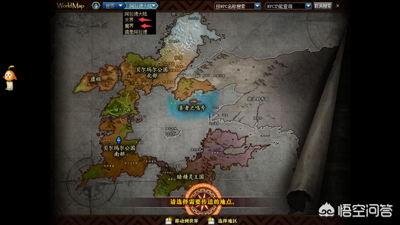 这次起源改版,天界,异界,魔界,素喃地下城都改了传送地点,那么现在有两种方式可以传送到目的。