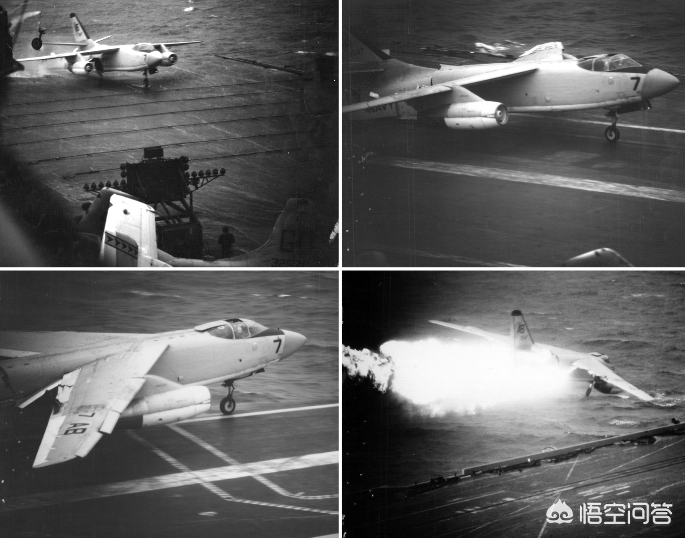 道格拉斯A3“空中勇士”舰载战略轰炸机(1956年~1991年):绰号“鲸鱼”,它是美国海军航母上操作过的最大最重的舰载机,机长23.27米,翼展22.1米,机高6.95米,最大起飞重量37吨。A3D因糟糕的机械故障记录被飞行员戏称为“All Three Die”,所有机组成员死亡——A3拥有三名机组:飞行员、投弹手/导航员和第三名机组成员。虽然A3的飞行员技艺高超,但是驾驶这种体型大、速度慢、机体沉重的飞机不是一件容易的事情~