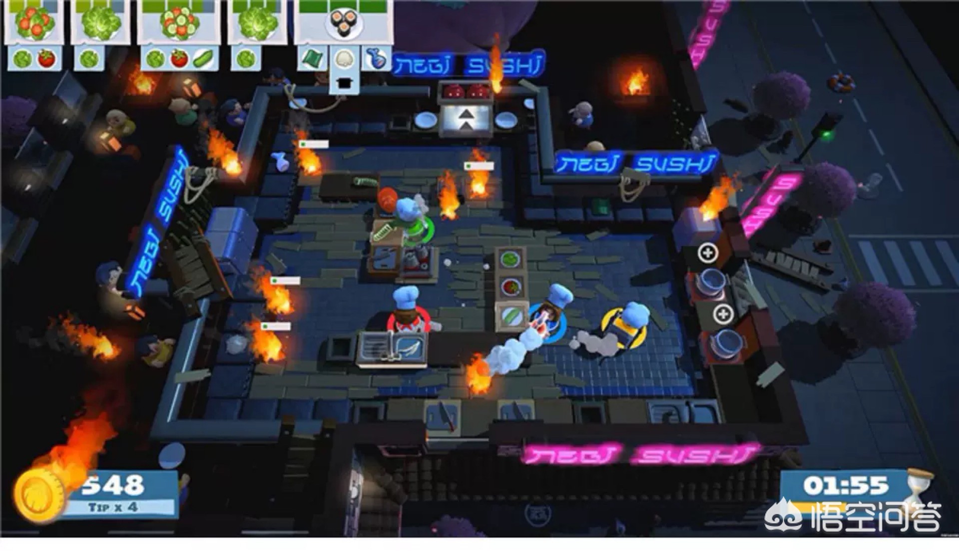 这个问题十分有趣,《over cooked》是Ghost Town工作室制作,Team 17发行的烹饪题材独立游戏。需要玩家在一定时间内利用正确的原材料进行搭配,作出新鲜可口的美食。