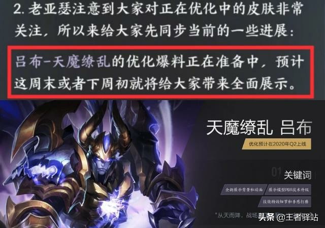 根据王者荣耀最新消息显示,即将优化完毕的吕布天魔缭乱皮肤将在本周末或下周初登录游戏中展示给大家,届时玩家可在商城中入手该皮肤,预计首周1788点券,首周折扣价的话,会优惠更多,有兴趣的玩家还是可以了解一番的。