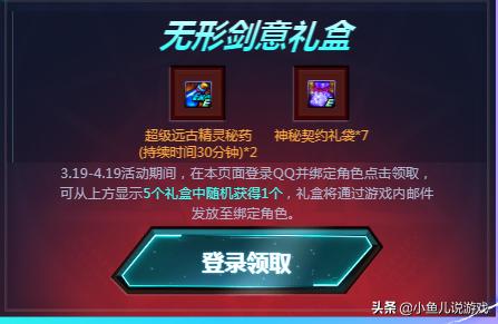 这五个鬼剑士礼盒都是以鬼剑的职业来命名的,第一个无形剑意礼盒,当然指的就是剑魂了,这里面的奖励是一个超级双倍经验药和7个神秘的契约礼袋,这个经验药正好可以帮助我们更快的达成满级。