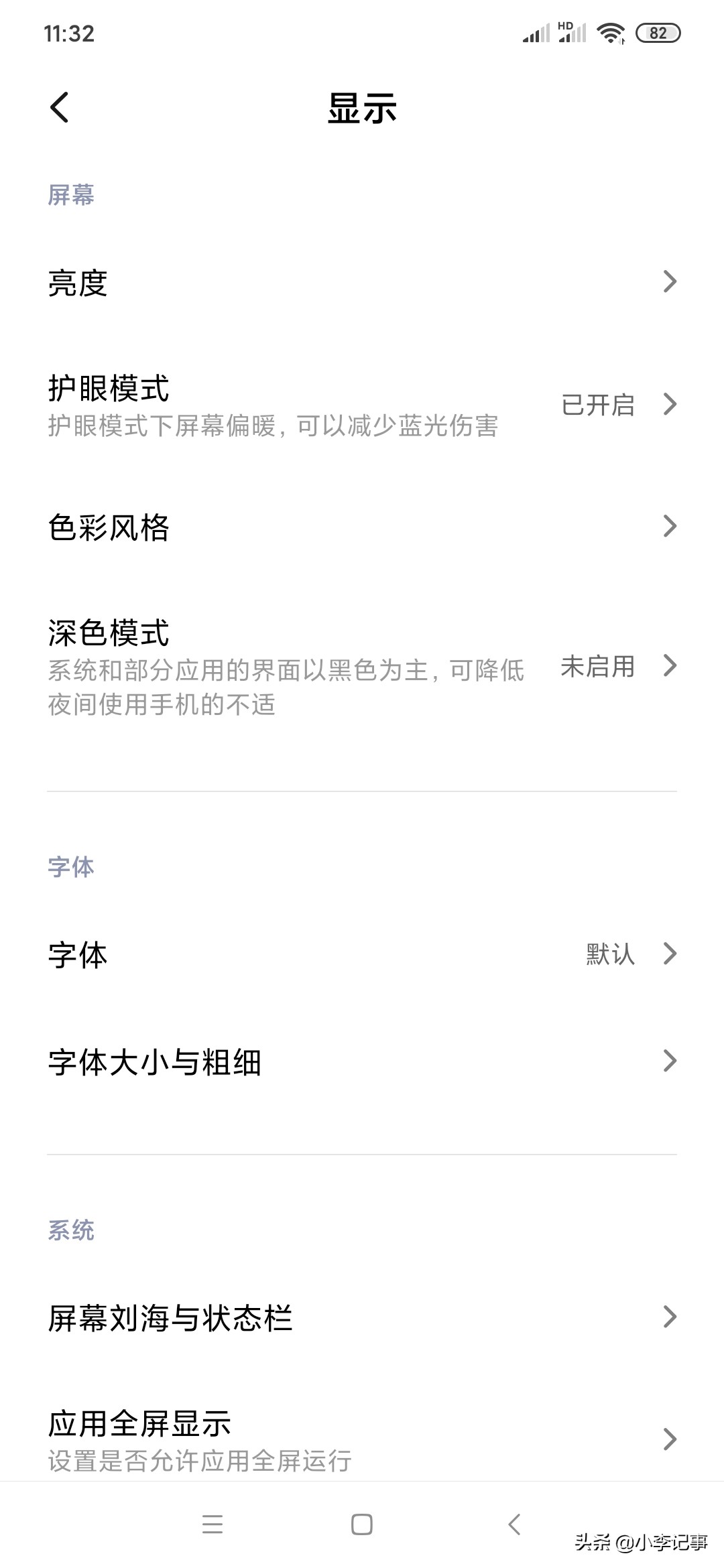 4. 对于小米手机,可以在设置 - 显示 - 字体大小与粗细中调整字体大小。