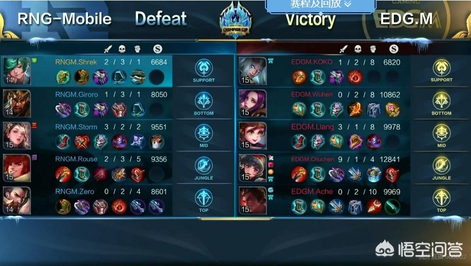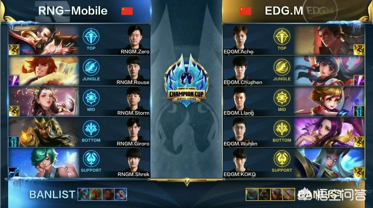冬季冠军杯四进二,RNGM对阵EDGM,两个队伍均来自于东部,2018年从KPL春季赛打到2019年冠军杯,也算是一对老冤家了。