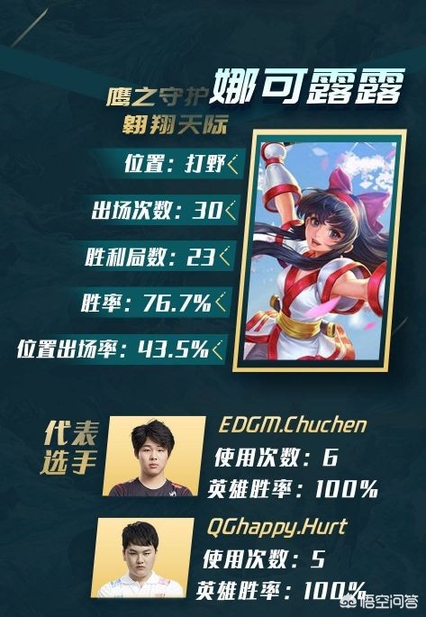 娜可露露在冠军杯中出场30次,胜率高达73.7%,初晨与刺痛更是全胜,这英雄很强吗