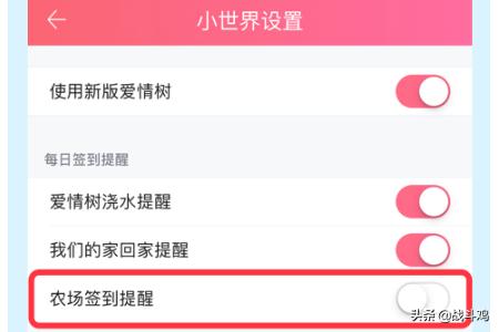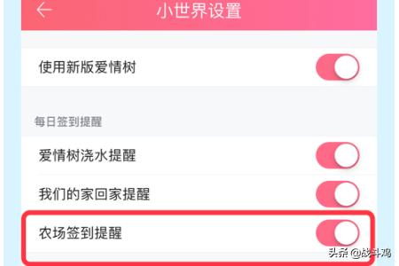 4、在【小世界设置】界面,选择并点击【农场签到提醒】选项。