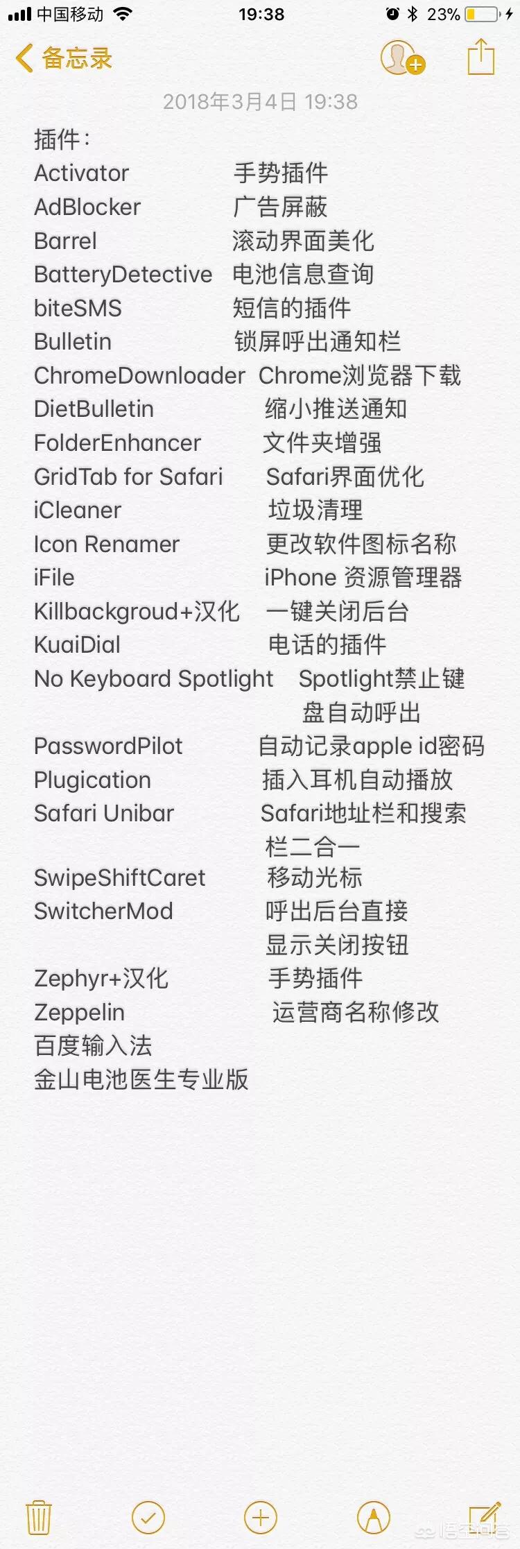 以下是我当年手机里装的各种插件,现在有价值的已经没几个了,所以我个人认为现在已经越狱已经没有很大必要了。