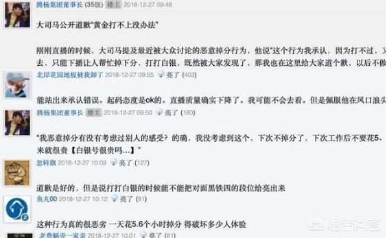 说实话,虽然我也挺喜欢看大司马直播,但这样的道歉就跟没说一样,“黄金打不上去,只能故意掉分”,这叫什么话?有逻辑性吗?估计掉分不就是为了不上黄金吗?再说了,你大司马好歹曾经是个王者,黄金打不上,白银局疯狂虐菜算什么?难道不是你打的?