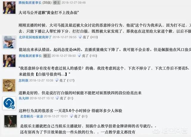 而大司马在最近的直播中也正面回应了这件事,原话是这样的:这些行为我承认,因为打不过又没号,没办法黄金打不上去,下播后只能请人掉分,打打白银,既然被发现了,我就给大家道个歉,以后不这样了。