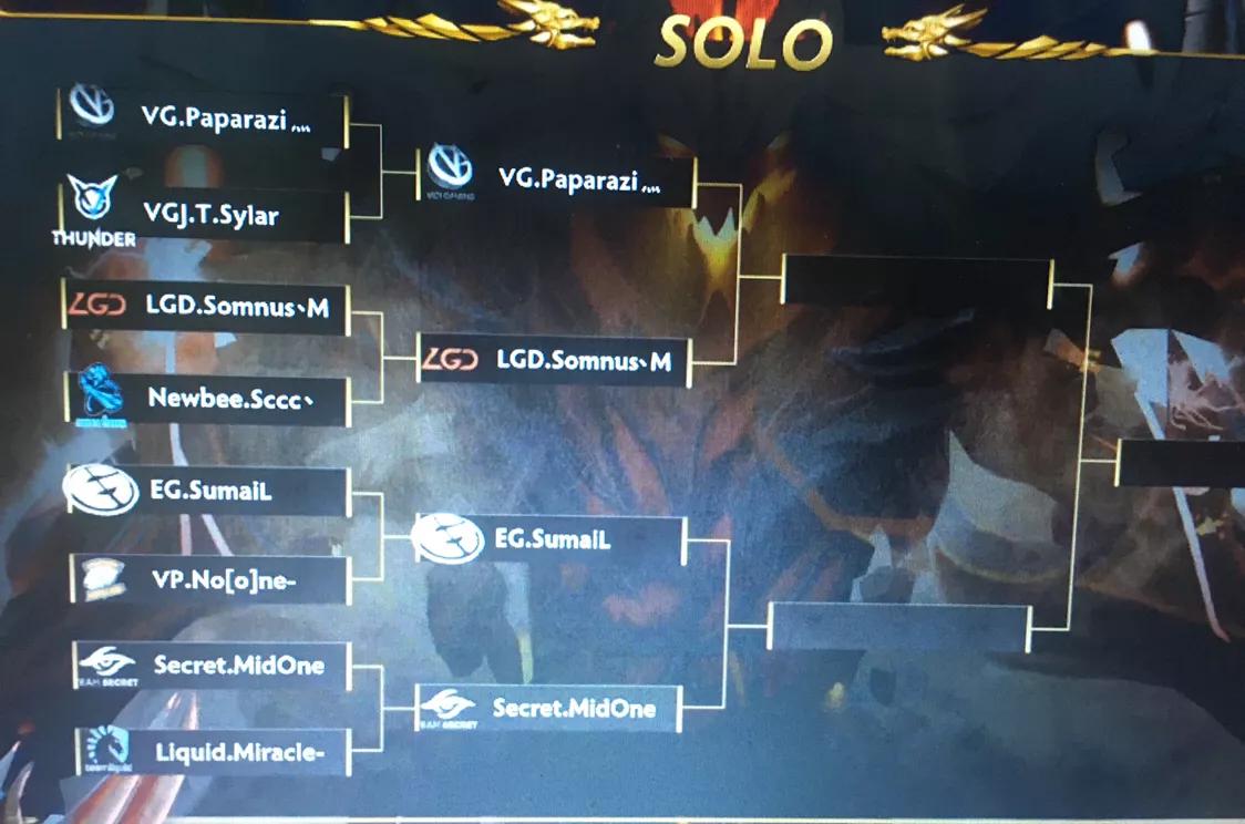 在4.5号清明节这天,迎来了刀塔2亚洲邀请赛的重头戏solo比赛,第一场比赛,由上届冠军paparazsi对阵sylar赛老师,世界第二可爱,通过不断的运大药,吃芒果,始终保持自己良好的状态,将补刀机器赛老师打了下去,当然最让你期待的肯定是圣may的比赛,下面先来看下solo赛程