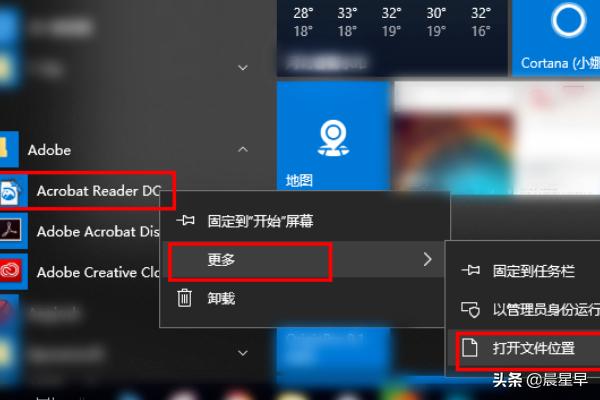 1、首先关闭所有pdf文件,通过开始菜单找到adobe reader这一PDF阅读软件快捷键,右键-更多-打开文件位置,或直接打开路径C:\ProgramData\Microsoft\Windows\Start Menu\Programs。
