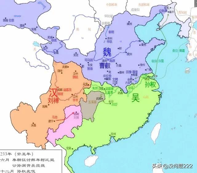2、220年,曹丕篡汉称帝,定都洛阳,国号“魏”,史称曹魏,三国历史正式开始。次年刘备称帝,定都成都,史称蜀汉。222年刘备在夷陵之战失败,孙权获得荆州大部。223年刘备去世,诸葛亮辅佐刘备之子刘禅与孙权重新联盟。229年孙权称帝,定都建邺,国号“吴”,史称东吴,至此三国正式成立。
