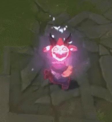 最令人意外的是设计师为小炮的E技能增加了彩蛋,在炸弹临近爆破的时候会变成一只狂笑的提莫头,强行为小炮和提莫组CP,效果也是非常不错。