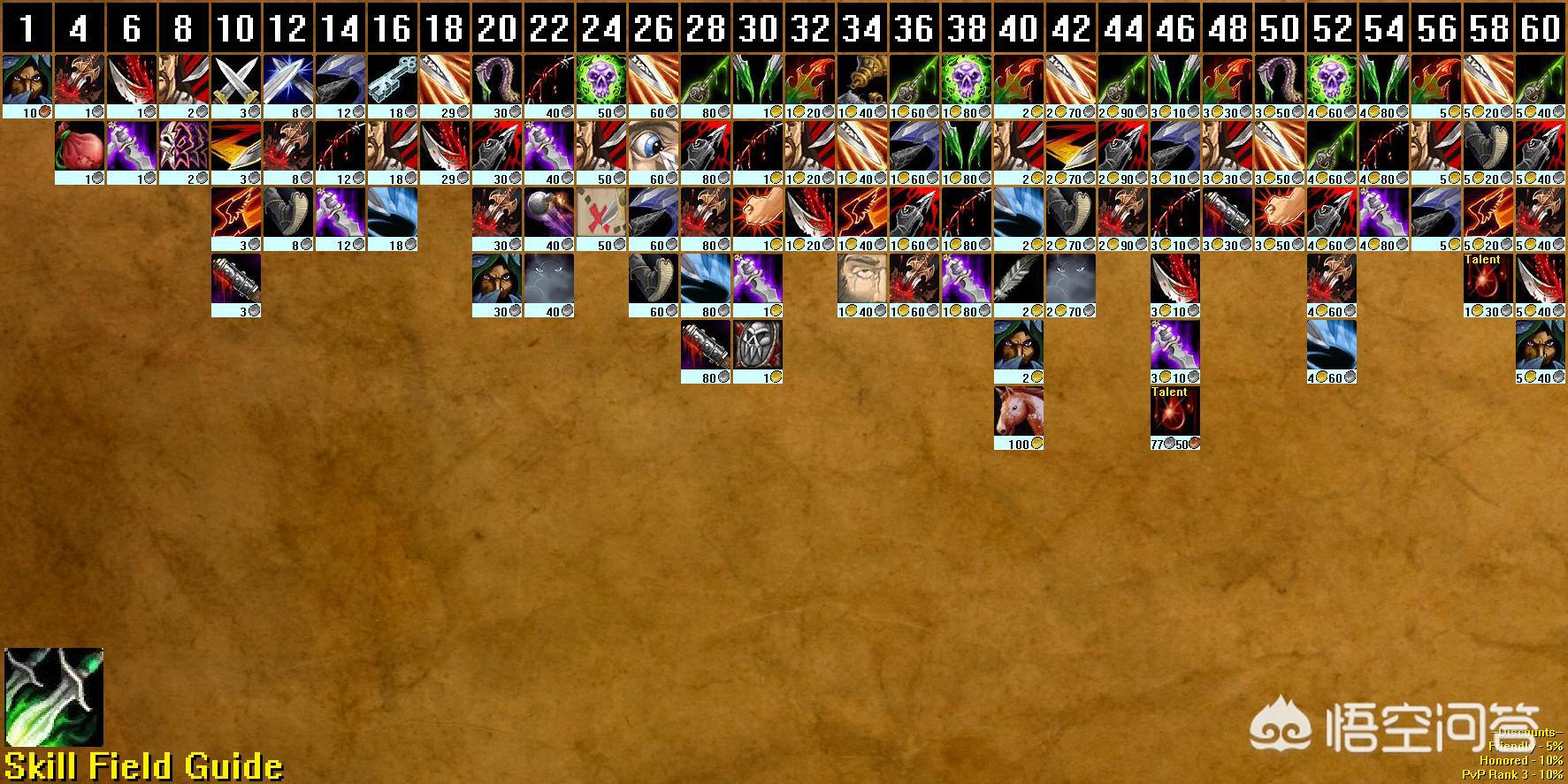 魔兽世界怀旧服各职业技能大全,每个等级可学习的技能和名称是什么