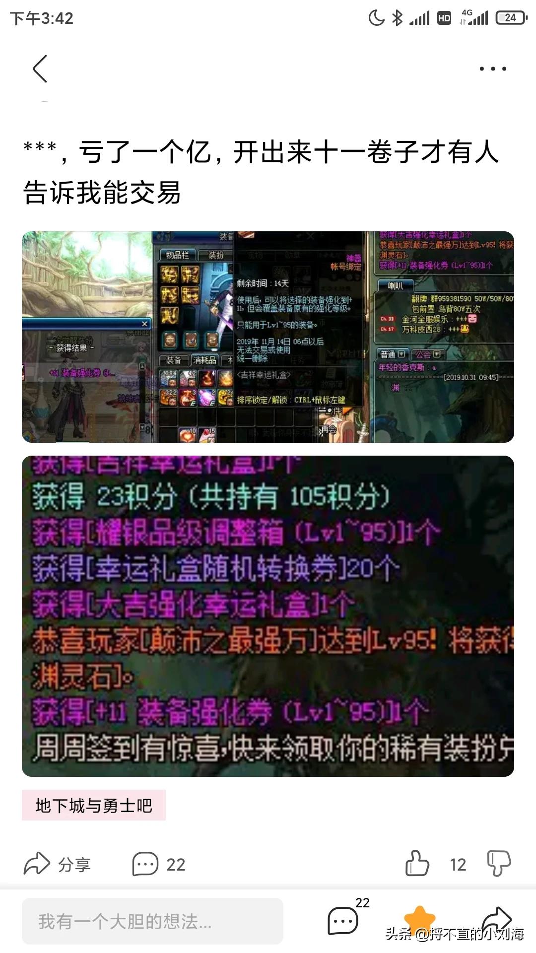 DNF幸运玩家直接开出“大吉强化礼盒”,不知道可交易自用了,直言亏了1个e,如何评价