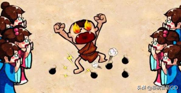 猜成语4:这幅图上画的是一个衣着简陋的男子站在中间,地上有很多正在燃烧的炸弹,男子双眼冒火,举着双手又跳又叫。而他的两边分别站了很多的围观群众,这些围观群众都是女子,她们一脸的惊恐,用手捂住了尖叫的嘴巴。