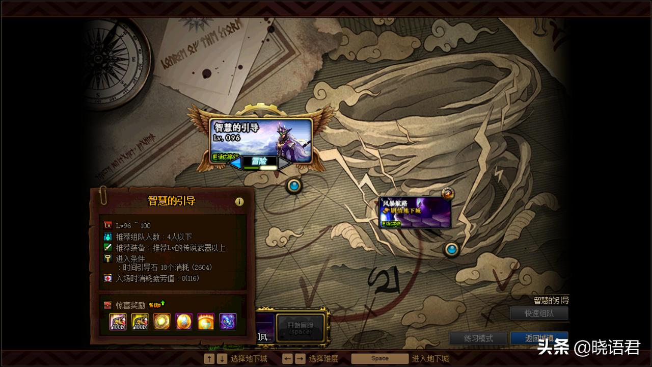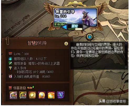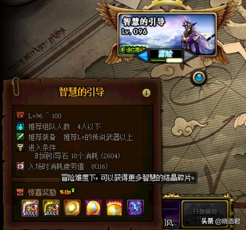 100级深渊地下城:智慧的引导分为普通和毛线。冒险难度偏高,掉落装备概率、材料数量也有所提升。