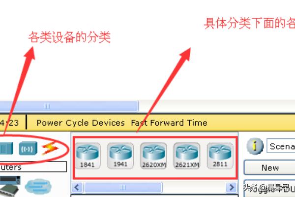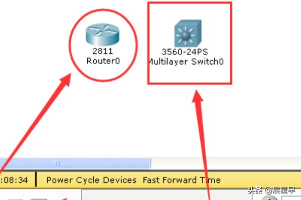 4、接着,把你想要模拟的设备添加进工作区间,方法很简单,依次选择“设备分类”,“分类下面的具体型号设备”,然后拖入工作区间即可!例如,我分别拖入了一个2811路由器和一个3560交换机!