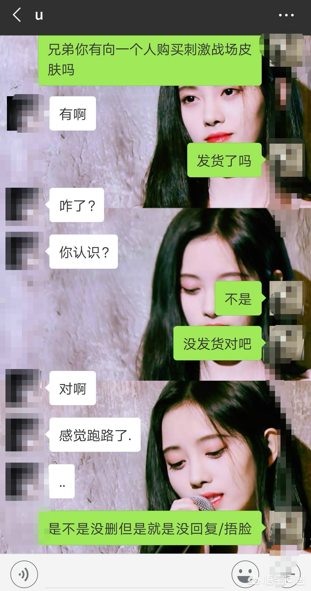 上图中的两位玩家在付款之后却迟迟没有拿到骗子的“发货”,结果两人一聊天,觉得可能是上当受骗了!因为付款之后再联系骗子,也没有任何回复!