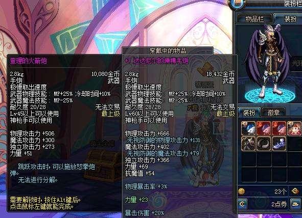 查理的手炮是70版本出领主装备玩家梦寐以求的装备,特别是对于枪手来说,这把武器的特殊之处是跳跃攻击时可以释放一个火弹子,掉落之后会呈现火焰爆炸的效果,攻击到敌人会浮空,枪手学了空中连击起手简直不要太容易,在那会小贤也有幸获得一把,不过却不小心分解了。