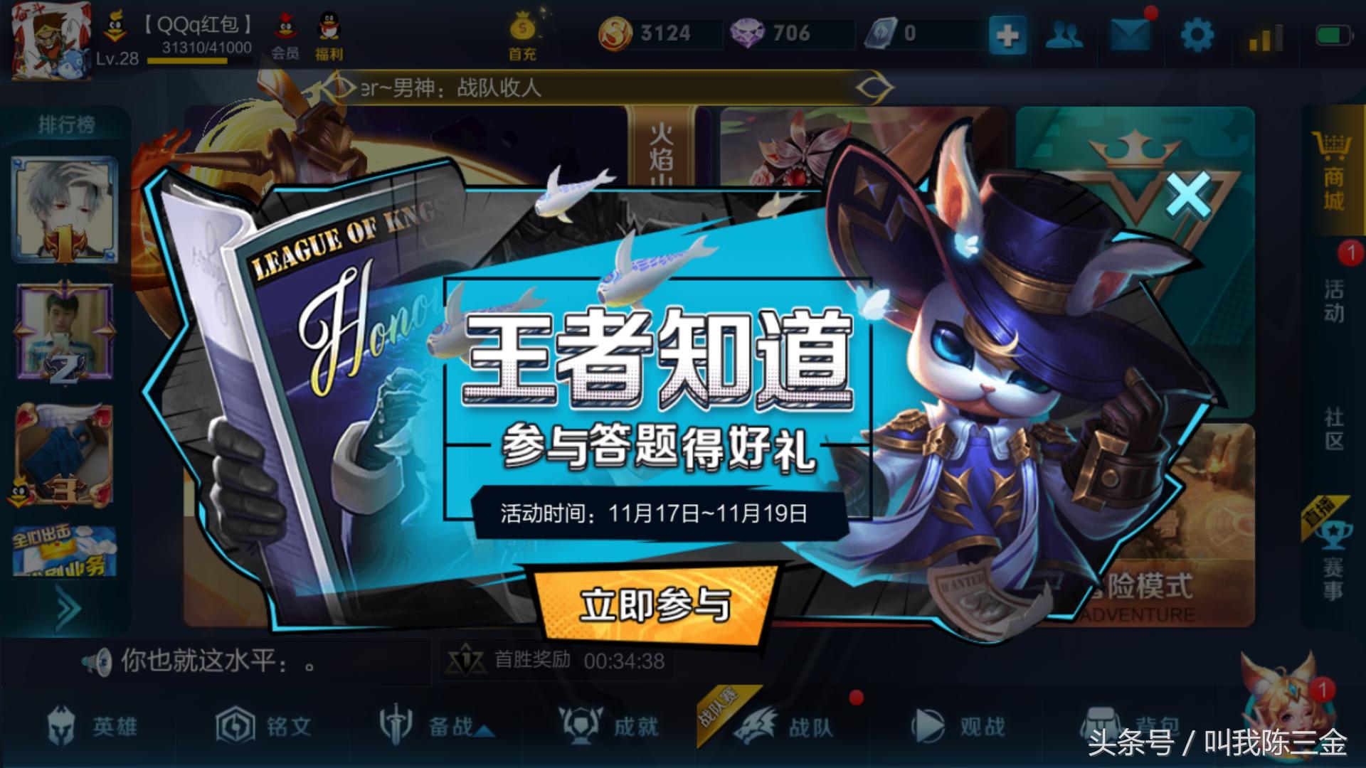 而对于“王者知道答题”这个活动我们可以在这里去找,活动——限时活动——王者知道进入。